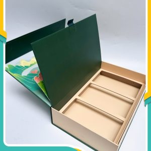 Printgo đã lựa chọn quy cách hộp nam châm nắp lật cho hộp trà Thanh Hằng để tạo ra sự tiện lợi và ấn tượng ngay từ lần đầu tiên sử dụng. Hộp được thiết kế với nắp phụ bên trong có hiệu ứng pop-up 3D ba lớp, tạo nên một không gian nổi bật khi mở nắp. Hiệu ứng này không chỉ khiến hộp trà trở nên sinh động mà còn mang lại một trải nghiệm thú vị và bất ngờ cho người sử dụng.