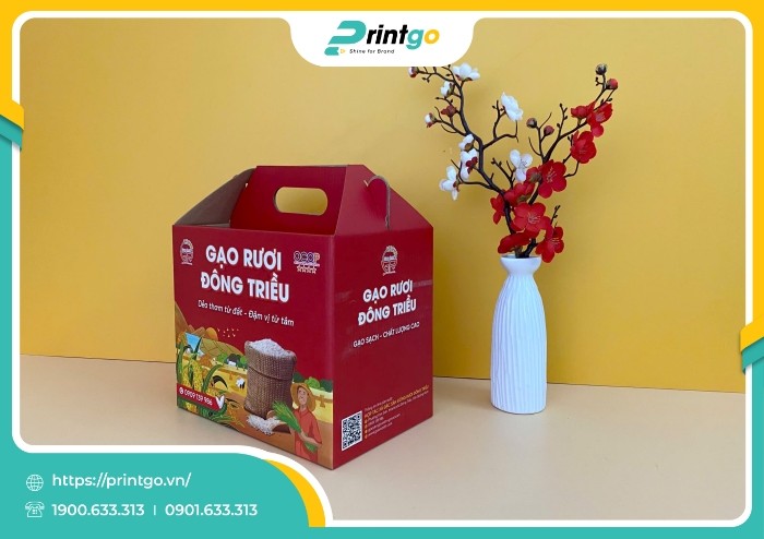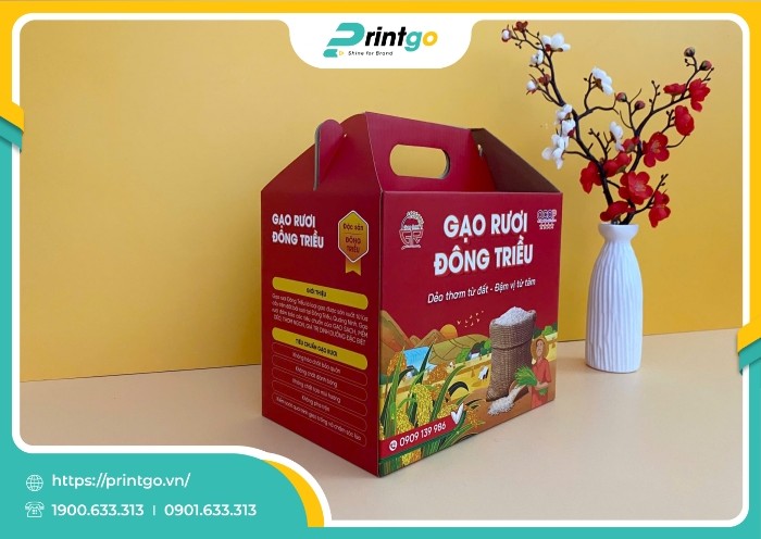 Xuất phát từ vùng đất nổi tiếng với bề dày truyền thống nông nghiệp, gạo rươi Đông Triều không chỉ là nguồn dinh dưỡng quý giá mà còn là biểu tượng của văn hóa địa phương. Thấu hiểu điều đó, Hợp tác xã Đặc sản Đồng rươi Đông Triều đã hợp tác cùng Printgo để tạo ra một diện mạo chuyên nghiệp, ấn tượng, khẳng định vị thế của thương hiệu trên bản đồ nông sản Việt Nam. Dự án in hộp sóng quai xách đựng gạo rươi Đông Triều PG-HG24-84 không chỉ mang tính thẩm mỹ, thân thiện với người tiêu dùng mà còn góp phần lan tỏa bản sắc độc đáo của địa phương.
